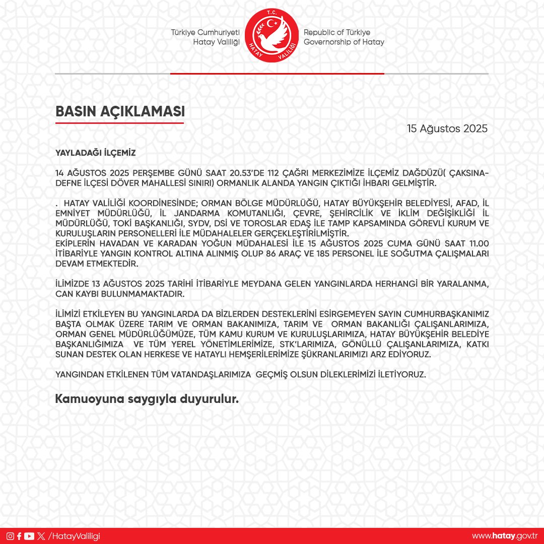 VALİLİKTEN YANGIN AÇIKLAMASI!